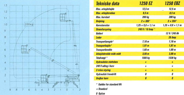 Liften har en max arbejdshøjde på 12,5 meter.