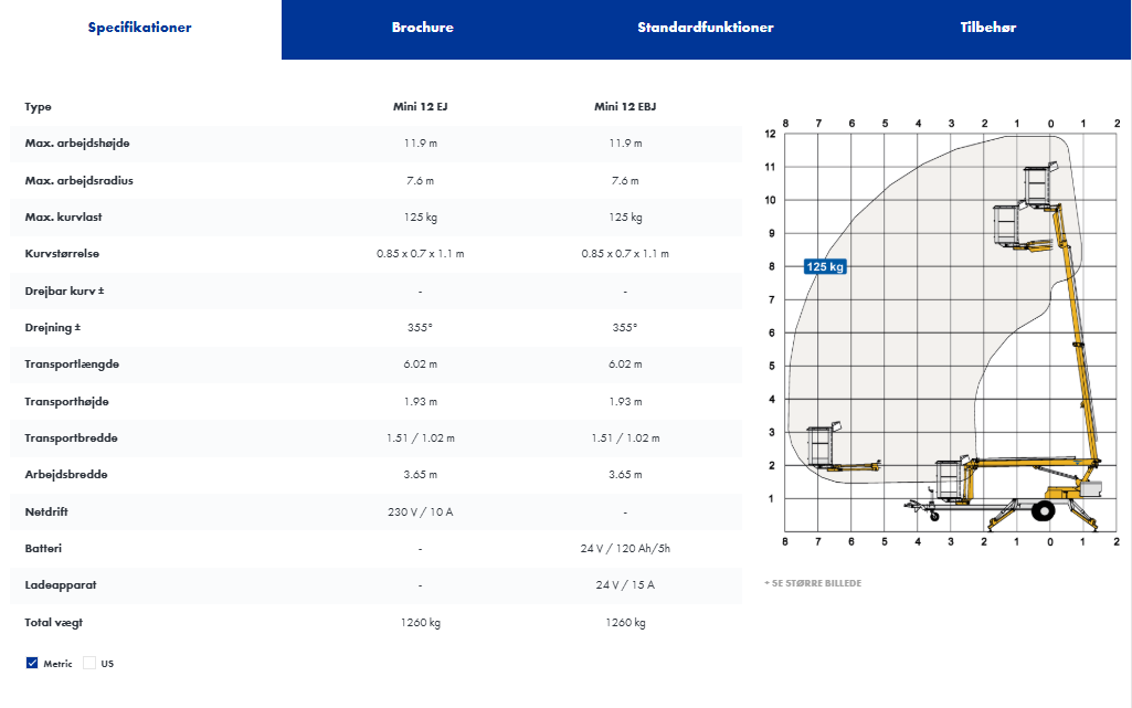 Liften har en max arbejdshøjde på 12 meter.