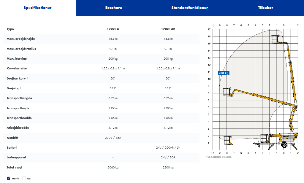 Liften har også gode muligheder for at komme langt ind over. Dette er den ultimative lift til mange arbejdsopgaver.